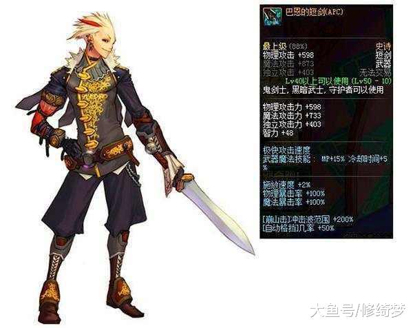 阿甘左在巨剑上的造诣旷古烁今,使用过的武器有阿甘左的浪人长剑、天霜寒气和天魔斩。从消灭邪龙任务中可以看出这把武器是阿甘左的浪人长剑,在拍卖行中依旧可以购买得到。一些眼尖的老玩家此时可能会想起另一把阿甘在的专属武器,那就是阿甘左的隐龙巨剑,这把武器在旧版本中是真实存在的一把神器级别巨剑,当前版本已经绝版了,不过在拍卖行中输入名字依旧可以看到。武器模型